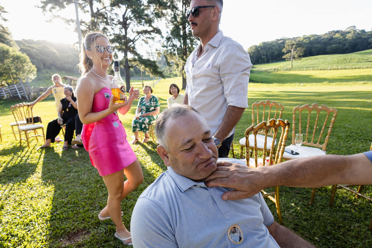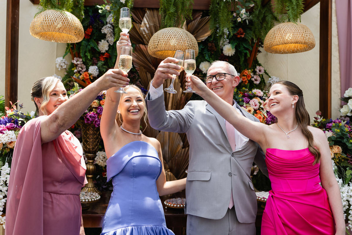 E animação não faltou. A festa foi embalada por uma banda contagiante, teve fogos de artifício iluminando o céu e muitas rodadas de shot que garantiram risadas, brindes e momentos inesquecíveis.