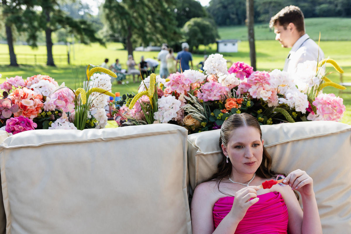 O almoço celebrou não apenas a conquista do diploma em Direito, mas toda a trajetória até ali. As cores do verão — vermelho, rosa, laranja e lilás — tomaram conta da decoração e traduziram perfeitamente sua personalidade alegre e divertida.